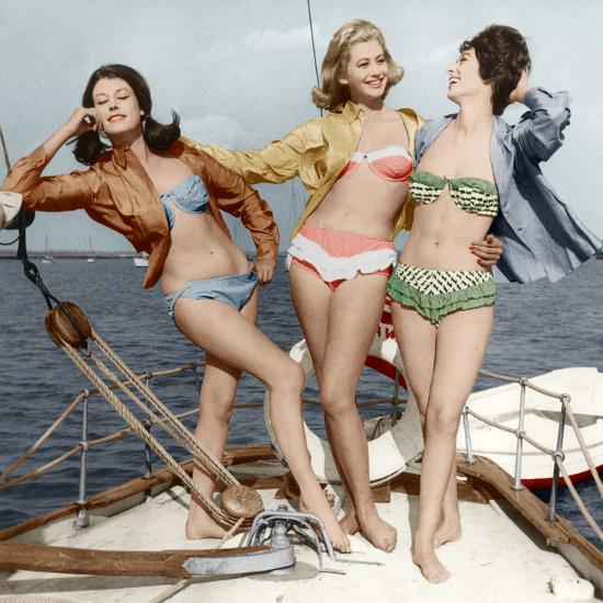 Three Young Women Wearing Bikinis Late 50 S Early 60 S Colourized